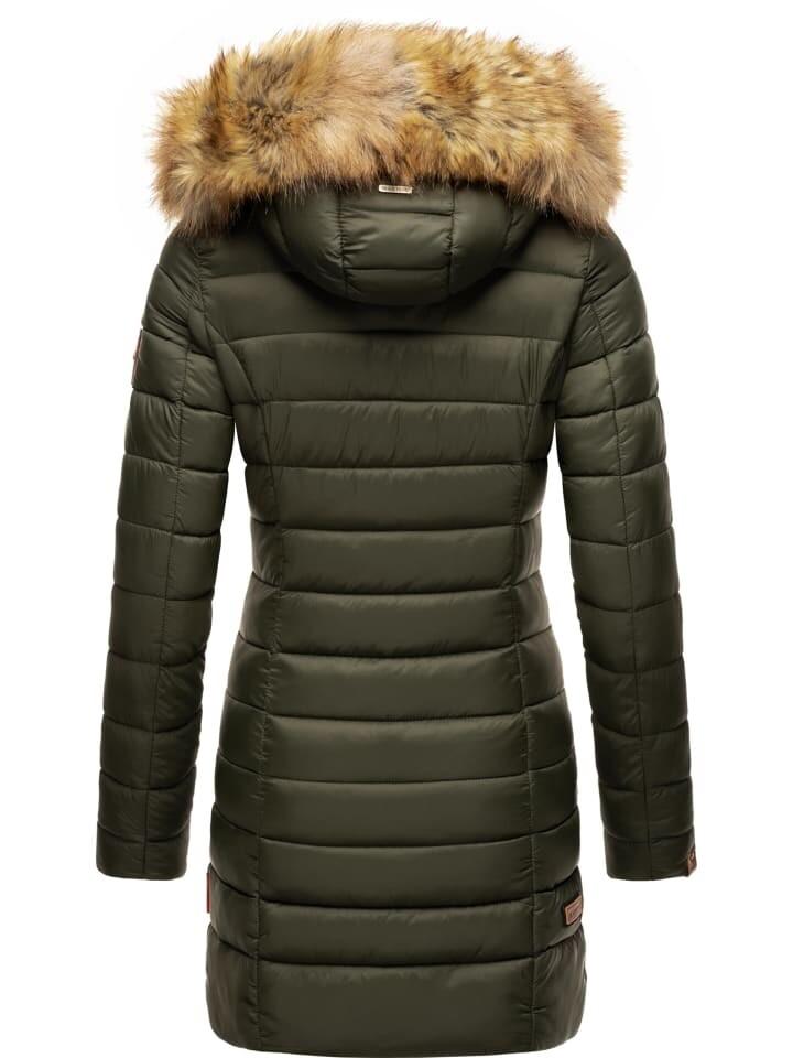 МАТЕРИАЛ: Стеганое пальто с матовым мерцающим внешним материалом, высокий комфорт при ношении благодаря мягкому и мягкий материал, пушистый теплый искусственный мех на капюшоне