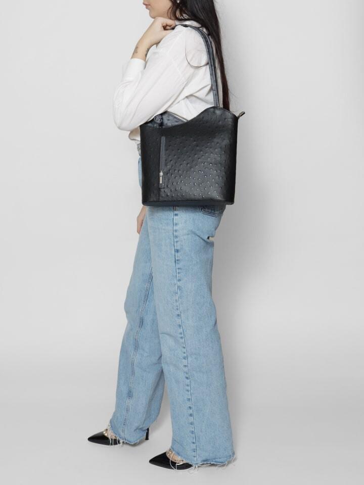 Женская сумка с ручками-трансформером в рюкзак из натуральной кожи страуса. Итальянский продукт ручной работы. Сделано в Италии 25,0 x 28,0 x 9,0 см