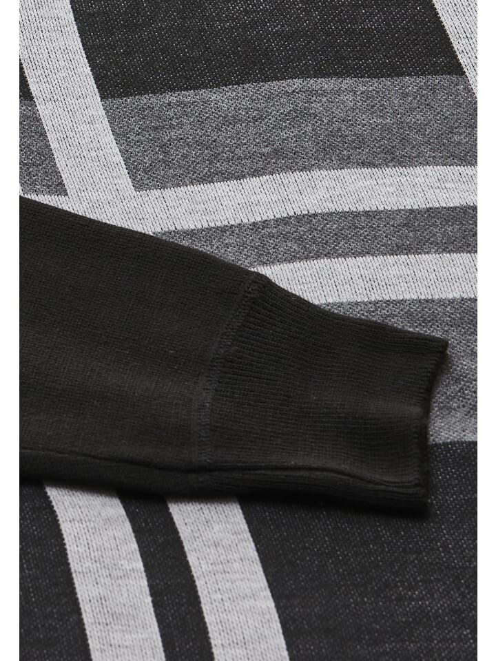 Этот свитер с длинными рукавами, круглым вырезом и ребристыми манжетами украшен ярким сетчатым узором с горизонтальными и вертикальными полосами, создающими структурированный геометрический вид. Трикотаж обеспечивает тепло и комфорт, а стандартный крой создает универсальный стиль, подходящий как для повседневного, так и для неформального случая.