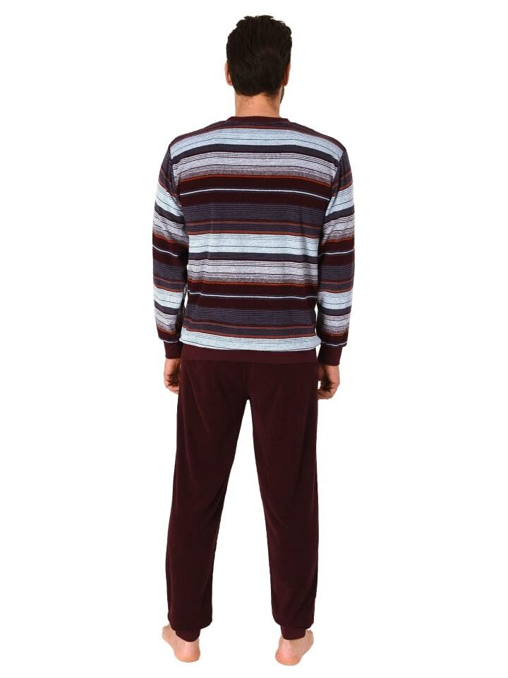 Мужская махровая пижама с длинными рукавами и манжетами в полоску - также больших размеров