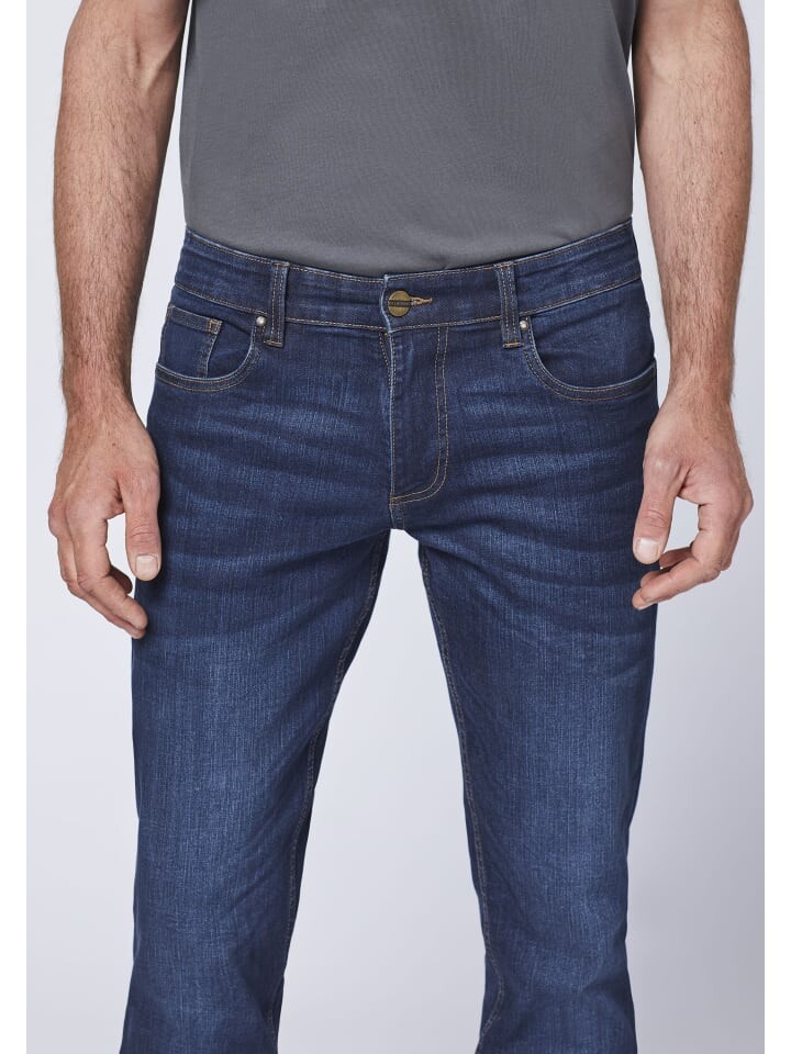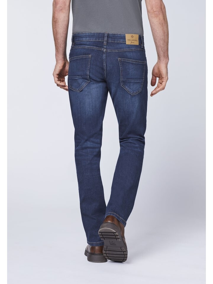 Джинсовая ткань во всей красе! Мужские джинсы OKLAHOMA повседневного кроя с пятью карманами имеют прямые штанины и прекрасно дополняют мужские повседневные наряды. Они изготовлены из смеси хлопка и эластана, что делает брюки приятными, мягкими и удобными в ношении.