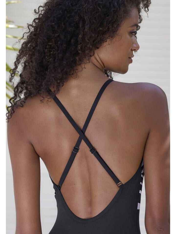 Модный купальник от Lascana в морской полоске. Американский вырез. Регулируемые бретели-спагетти крест-накрест. Съемные мягкие чашки и эластичная лента под грудью. Мягкая на ощупь микрофибра.
