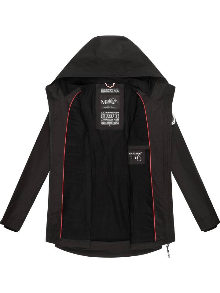 ВИД: Стильная женская переходная куртка с капюшоном в спортивном стиле - шикарный универсал для любого (спортивного) активного отдыха, для походов или путешествий. МАТЕРИАЛ: Нескользящий, водонепроницаемый и ветрозащитный внешний материал, куртка для активного отдыха имеет очень приятная гладкая, но в то же время мягкая внутренняя подкладка, которая доходит до капюшона и делает ее особенно удобной в ношении. ПОСАДКА: слегка приталенный крой (сборки на спине) делает верхнюю куртку идеальной фигурой, куртка с капюшоном удлиняется; сзади, чем спереди (закрывает низ) и сохраняет тепло в ветер и непогоду. ДЕТАЛИ: легкая походная куртка с мягкой подкладкой, мягкими внешними карманами для защиты от холода рук, высокозастегивающейся передней молнией с защитой подбородка и теплыми ребристыми манжетами. на концах рукавов, которые обеспечивают оптимальную защиту от ветра и непогоды в холодные дни