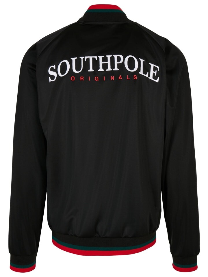 Настоящий образец городской моды: мужская тренировочная куртка выполнена из блестящего трикотажа из полиэстера и тщательно продуманных деталей. В центре спины надпись Southpole – двухцветная качественная вышивка. Цветовой дизайн перекликается полосками контрастного цвета на небольшом воротнике-стойке и широкими эластичными манжетами на рукавах и подоле. Два боковых кармана на молнии практичны. Максимальный комфорт при ношении достигается благодаря крою реглан с бесшовными плечами и свободному крою мужской тренировочной куртки. Нашивка с изображением Южного полюса на левой груди и небольшая этикетка с флагом Южного полюса завершают стиль.