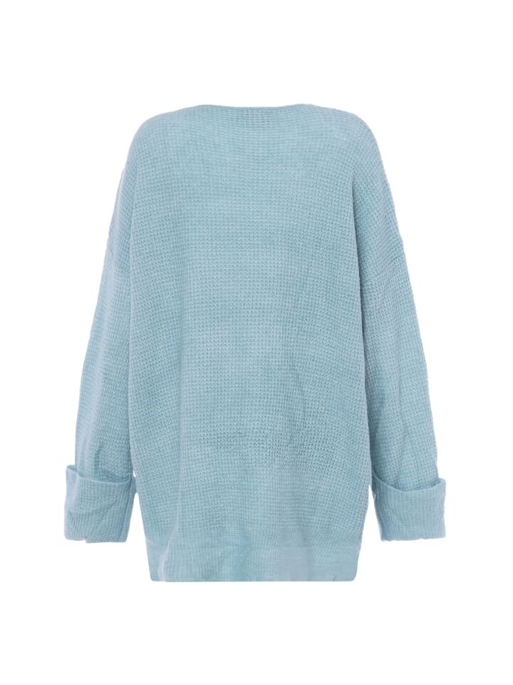- Вязаный свитер, Свободный крой, Круглый вырез, Длинные рукава, Ребристая отделка