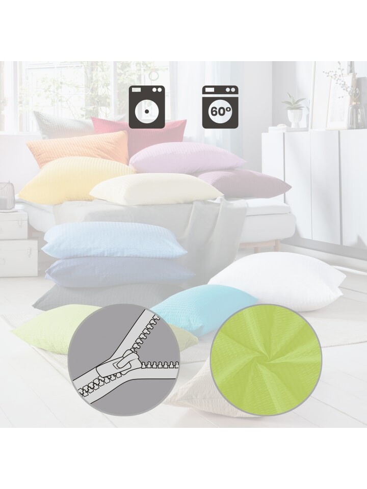 Наволочка из хлопчатобумажной ткани Erwin Müller "Розенхайм". Однотонный чехол на подушку легко впишется в любую спальню. В теплое время года качество с мелкой ниткой – воздушное, легкое удовольствие. Благодаря особой креповой структуре ткань полностью не соприкасается с кожей, поэтому воздух может циркулировать. Легкий в уходе, не гладкий и дышащий. Практичная застежка-молния значительно облегчает надевание.
