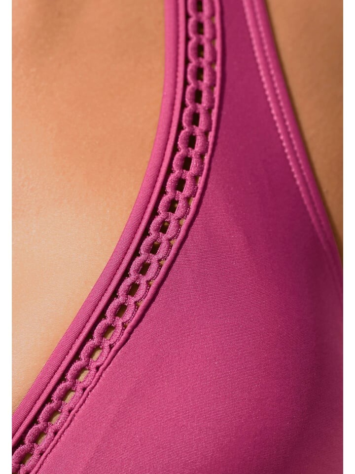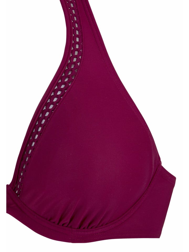 Бикини на косточках от Lascana с милыми дырочками на плавках. Шейный держатель для завязывания. Чашки со съемными подушечками. Застежка сзади. Плавки бикини чуть более высокого кроя. Приятное качество.
