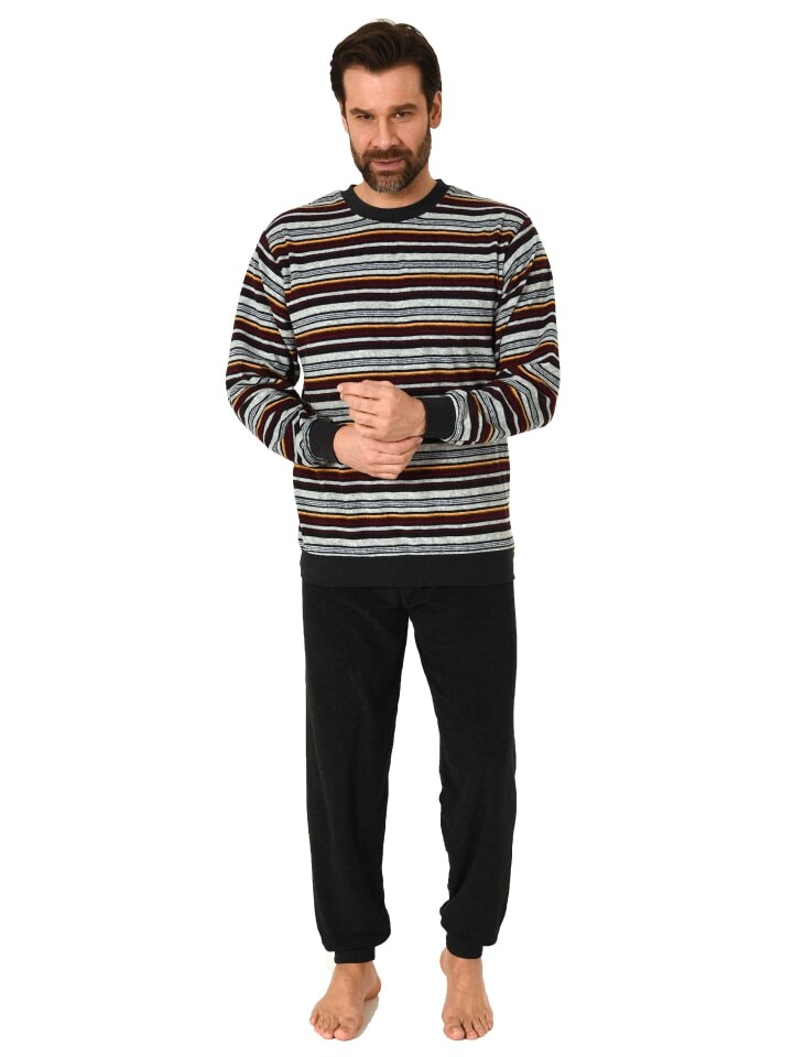 Превосходная степень: Очень удобная, очень теплая и приятная в носке: эти элегантные и элегантно выглядящие мужские пижамы из махровой ткани с длинными рукавами и манжетами - идеальный выбор для всех. кто любит это, хотел бы, чтобы ночью было хорошо, тепло и уютно. Такие детали, как манжеты, круглый вырез или удобный крой, обеспечивают удобство ношения пижамы.
