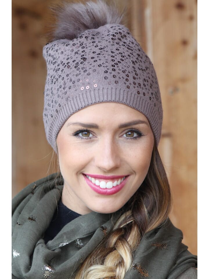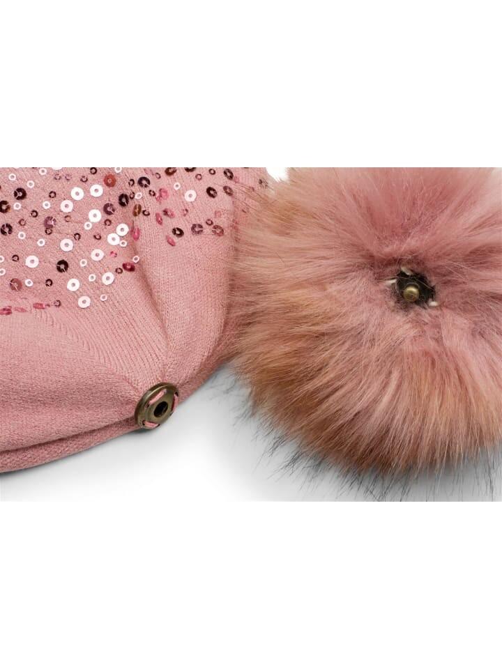 styleBREAKER шапка тонкой вязки с аппликацией из пайеток и съемным помпоном из искусственного меха.
