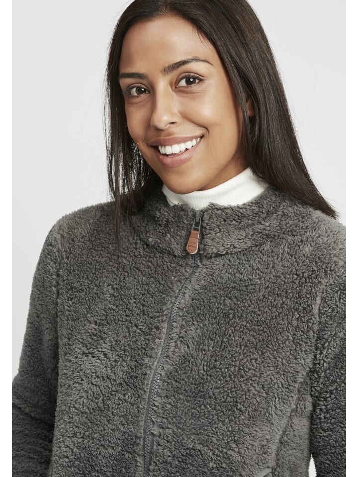 ДЕТАЛИ И ОСОБЕННОСТИ: Очень уютная флисовая ткань Тедди, теплый воротник-стойка, два боковых круглых кармана, значки с логотипом из искусственной кожи на молнии и подоле, привлекательная вешалка в этническом стиле, эластичные манжеты и подол, застежка-молния
