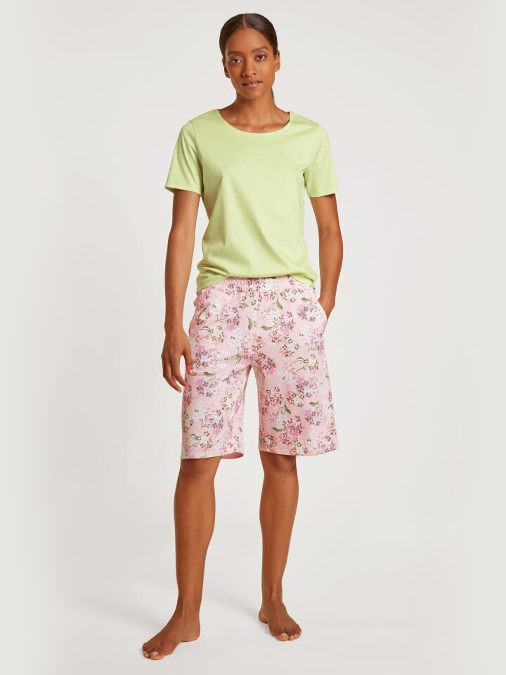 Игривый девичий принт цветов гортензии на хлопке станет приятным дополнением спортивного кроя шорт. Хлопковая перевязка интерлок придает шортам мягкость и комфорт на коже. Сочетание с рубашкой в тон создает непринужденный и освежающий наряд, подходящий как для отдыха, так и для сна. Цветочный дизайн создает радостное и позитивное настроение и создает ощущение моря цветов. В целом, шорты-бермуды из серии FAVORITES ROSY от CALIDA кажутся хорошим выбором для тех, кто ищет сочетание комфорта и стиля. Шорты можно носить как в качестве одежды для сна, так и в качестве домашней одежды, они представляют собой удачную замену более классическим моделям.