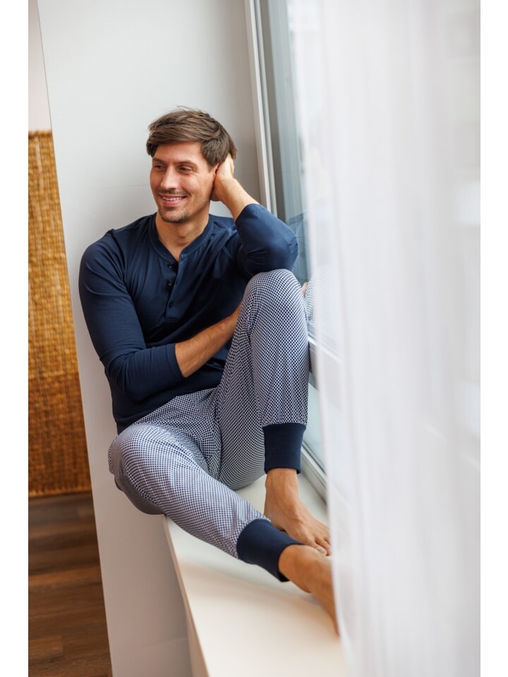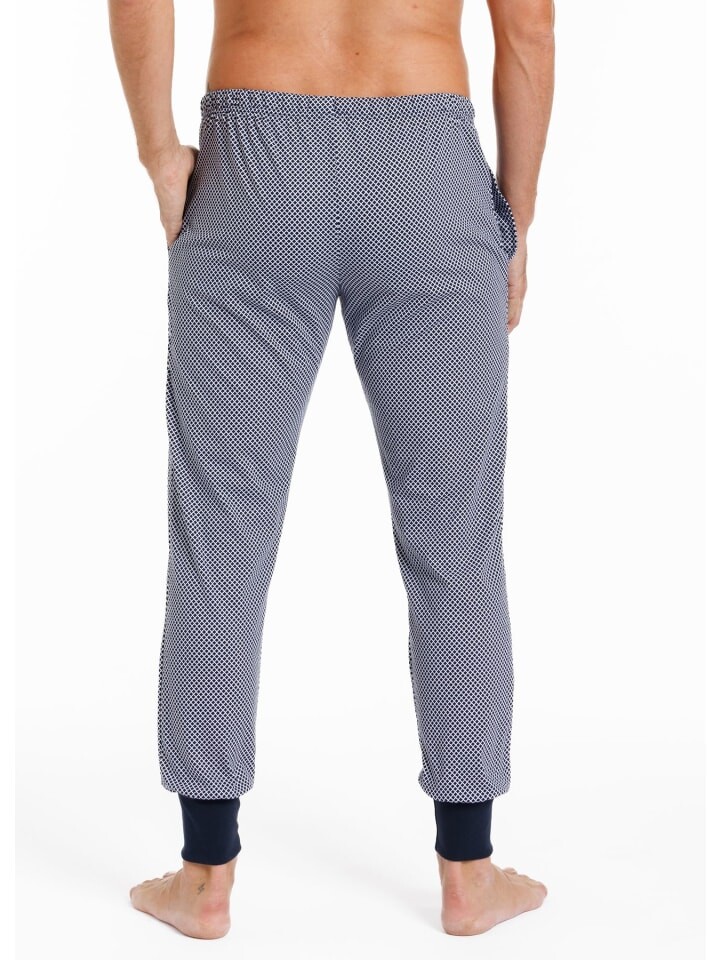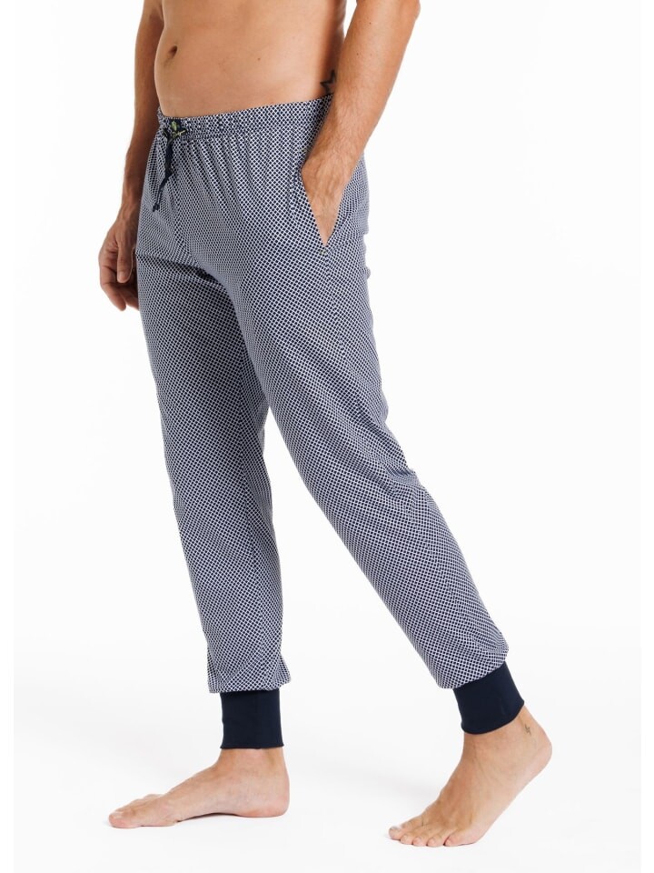 Пижамные штаны с манжетами в современном стиле спортивных штанов (покрой «морковь») впечатляют своей приятной тонкой тканью из одиночного трикотажа из 100% хлопка (органического). В боковых карманах достаточно места для салфетки, мобильного телефона или чего-то подобного. Кулиска на поясе обеспечивает дополнительную хорошую поддержку, а манжеты на штанинах придают изделию еще одну практичную деталь.