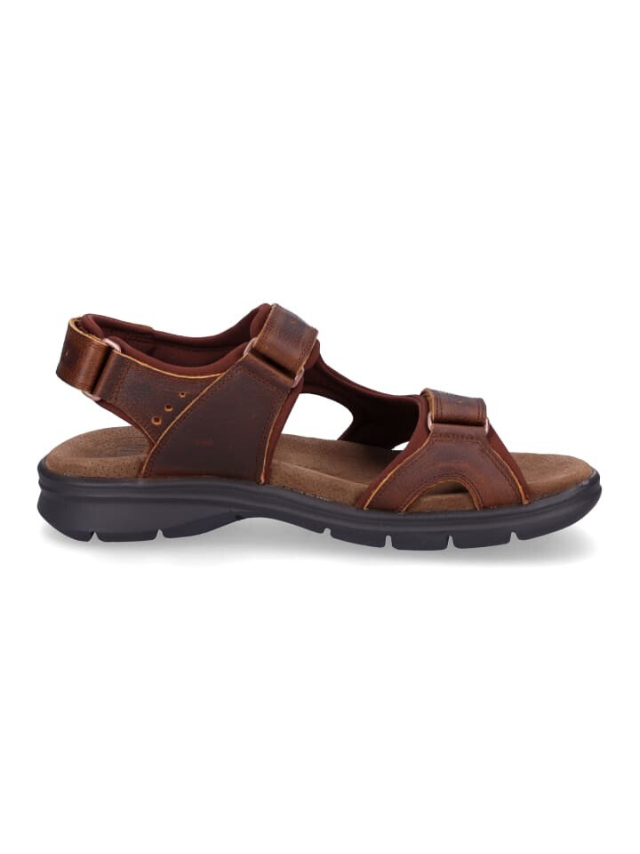 Мужские сандалии Panama Jack из кожи наппа светло-коричневого цвета с тремя регулируемыми ремешками на липучке, текстильной подкладкой и кожаной стелькой.