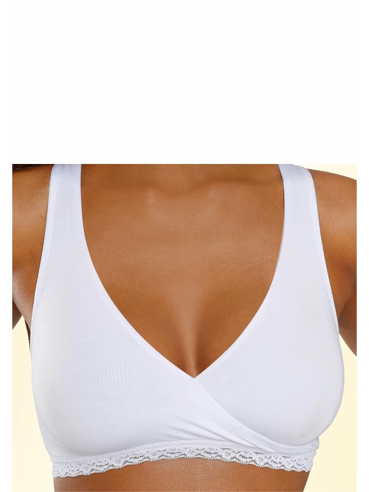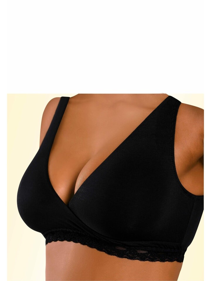 Бюстгальтер для кормления Petite Fleur с запахом, в упаковке 2 шт. Супер удобный бюстгальтер без косточек. Также подходит в качестве бюстгальтера для сна. Нежная кружевная лента под грудью. Изготовлен из 87 % модала, 7 % полиамида и 6 % эластана.