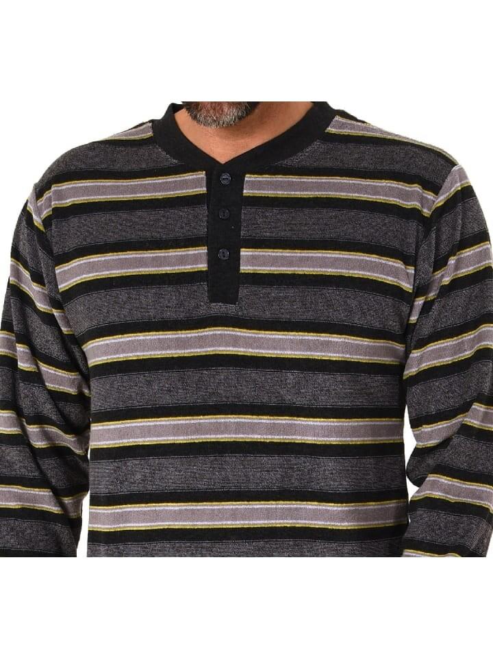Мужская махровая пижама Normann с длинными рукавами и манжетами в полоску - также в размерах оверсайз