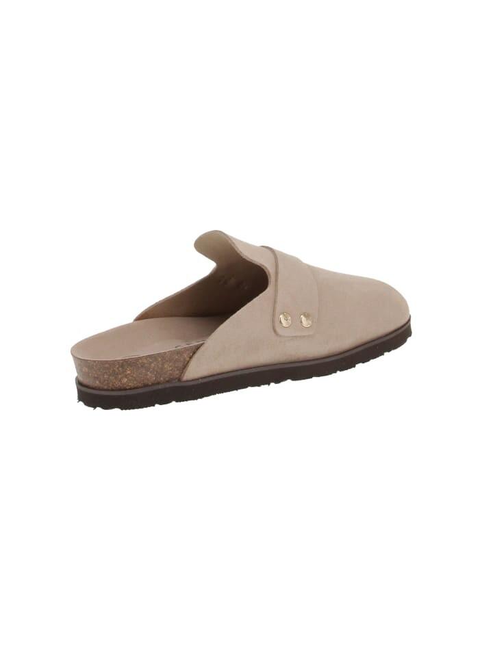 Эти тапочки от Genuins с закрытой передней частью из замши обеспечат уютные дни дома. Стелька из пробки и пенопласта, также обтянутая текстилем, обеспечивает максимальный комфорт. К особенностям этих тапочек также относятся ремешок и золотая пряжка на передней части туфельки, а также золотые заклепки на внутренней стороне.