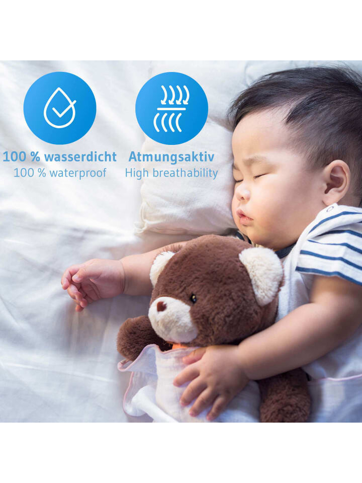 Кроме того, наматрасник протестирован Oeko-Tex. Благодаря поверхности Molton и посадке трение минимальное, а значит, и шум практически отсутствует. Наматрасник можно стирать при 60 градусах Цельсия, за ним легко ухаживать.