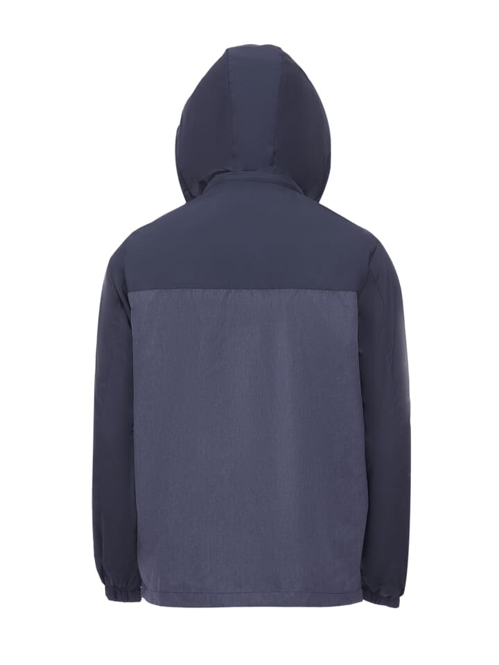 Вот перевод: «Представляем стильную куртку с капюшоном и молнией по всей длине спереди. Этот предмет одежды имеет уникальный дизайн с двойной текстурой и контрастными текстурами в верхней части груди и плечах. Длинные рукава имеют эластичные манжеты для дополнительного комфорта, а капюшон имеет регулируемую кулиску. Функциональные карманы на молнии с каждой стороны обеспечивают практичность и дополнены видимыми застежками-молниями. Эта куртка с прямым низом и стандартной посадкой одновременно модна и функциональна для повседневного использования.'