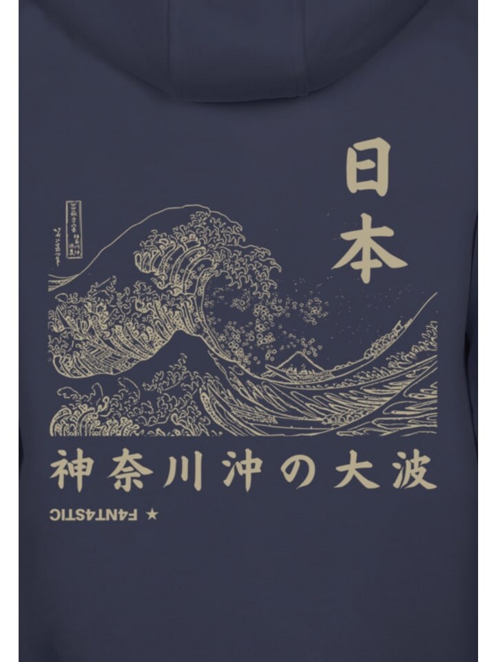 Женская толстовка с японским волнистым узором Толстовка с азиатским рисунком Наряд «Морской бриз» Сине-черная толстовка с классической росписью Пуловер «Любитель искусства» Культурная толстовка