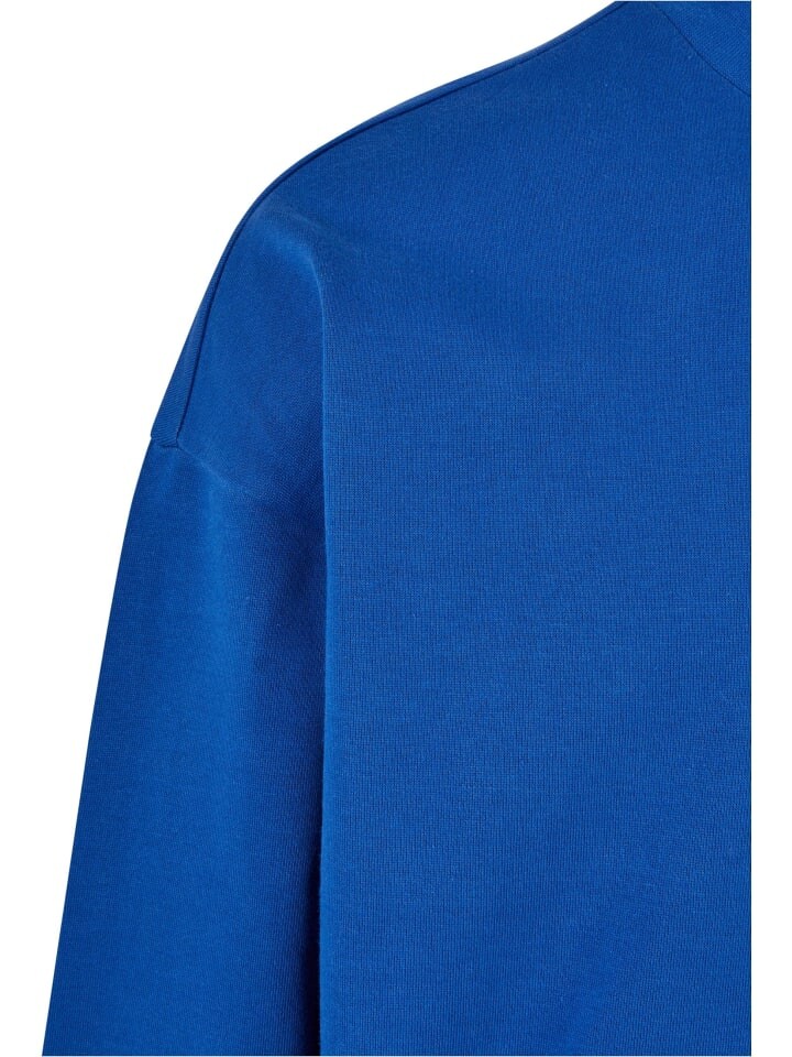 Мужской свитер оснащен карманом-кенгуру на животе. Также имеется круглый вырез горловины и ребристые манжеты на рукавах и подоле. Мужской свитер выполнен из мягкого натурального хлопка и имеет угловатую форму благодаря крою оверсайз со спущенными плечами.
