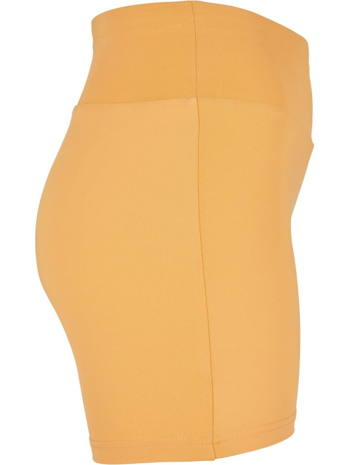 Эти простые однотонные женские спортивные брюки представляют собой гибрид шорт и велосипедок. Благодаря широкому пришитому поясу оно сидит высоко на талии и заканчивается выше середины бедер. Женские шорты плотно облегают фигуру, что стало возможным благодаря экологически чистому материалу из переработанного полиэстера и эластана.