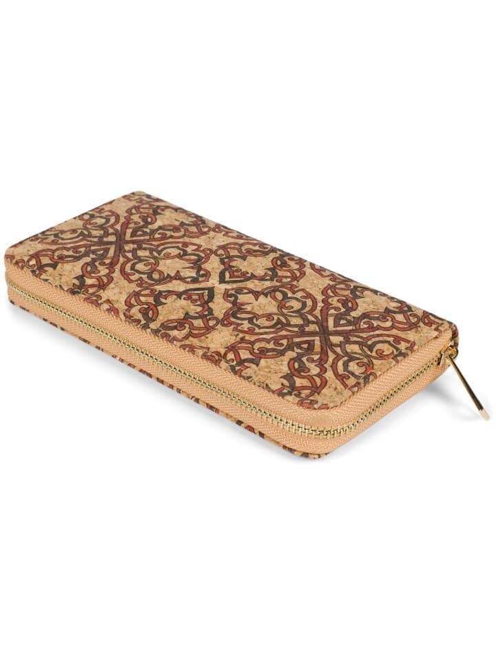 женский кошелек styleBREAKER из пробки с ярким этническим узором, застежкой-молнией по всему периметру.