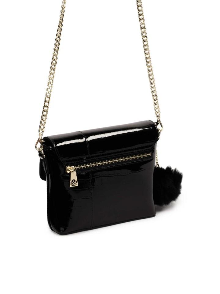 Небольшая сумочка с клапаном на металлической цепочке — это универсальный и вневременной стиль, который невозможно отсутствовать в вашем гардеробе. Тисненая лаковая кожа в сочетании с золотой фурнитурой и очаровательным помпоном выглядит элегантно и стильно. Компактная сумочка не занимает много места, практична, подходит ко всему и на разные случаи жизни.