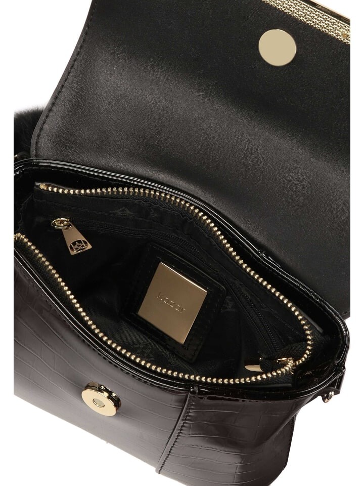 Сумочка имеет 1 отделение, которое закрывается клапаном на кнопке и молнии.