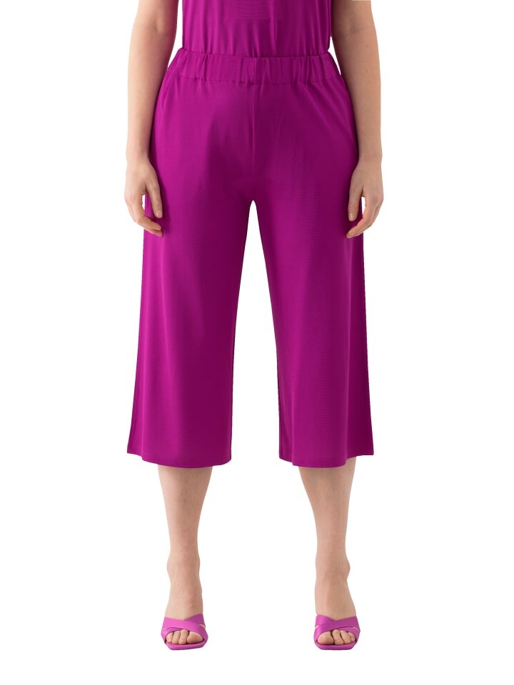 Кюлоты из облегающего пике длиной примерно до икры из элегантного облегающего трикотажа пике с тонкой структурой. Широкие прямые брючины с эластичным поясом и карманами в боковых швах.