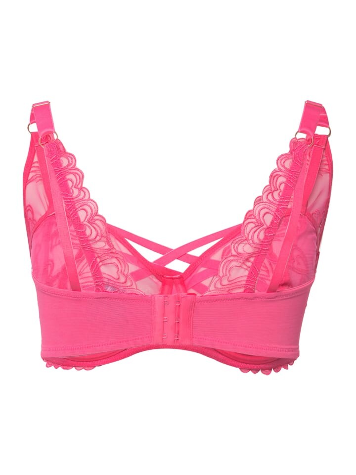 Бюстгальтер на косточках с мягкими чашками из кружева в виде сердечек. Сексуальные перекрещенные бретели спереди. Высокая вершина.
