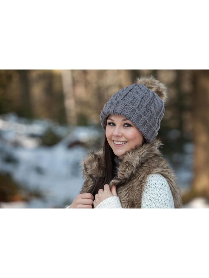 - Меховой помпон из 100% искусственного меха (полиэстера)