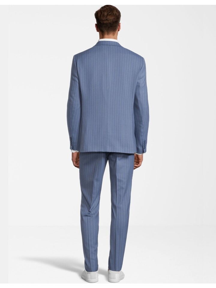 Классика со стильной ноткой: модный костюм в тонкую полоску от Steffen Klein принесет глоток свежего воздуха в ваш гардероб! Будь то деловая встреча, свадьба лучшего друга или выпускной вечер — этот костюм понравится всем, кто любит что-то особенное! Классические детали, такие как узкие лацканы пиджака с двумя пуговицами, карманы с клапанами и задние карманы на пуговицах, в сочетании с тонкими полосками образуют модное целое. Мягкая, слегка эластичная ткань и разрезы сзади добавляют комфорта стройной фигуре. Даже в индивидуальном сочетании пиджак и костюмные брюки хорошо подчеркивают фигуру и делают костюм универсальным компаньоном.
