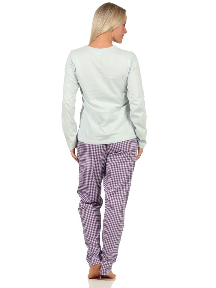 Женская пижама с длинными рукавами и надписью и брюки в клетку — 66536