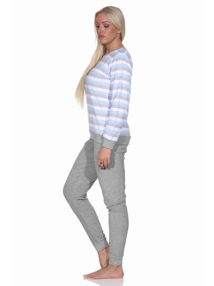 Женская пижама из махровой ткани, с длинными рукавами и манжетами - в полоску - также больших размеров