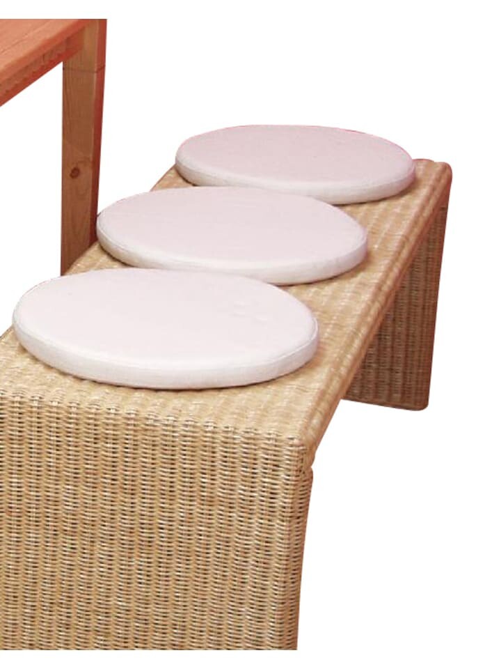Подушка сиденья с набивкой из пеноматериала, с прочным чехлом-панамой (65 % хлопок/35 % полиэстер), кремового цвета. С застежкой-молнией. Доступен в наборе из 2, 3 или 4 штук. Диаметр подушек сиденья 40 см. Мебель для сидения в комплект не входит. Без декора.