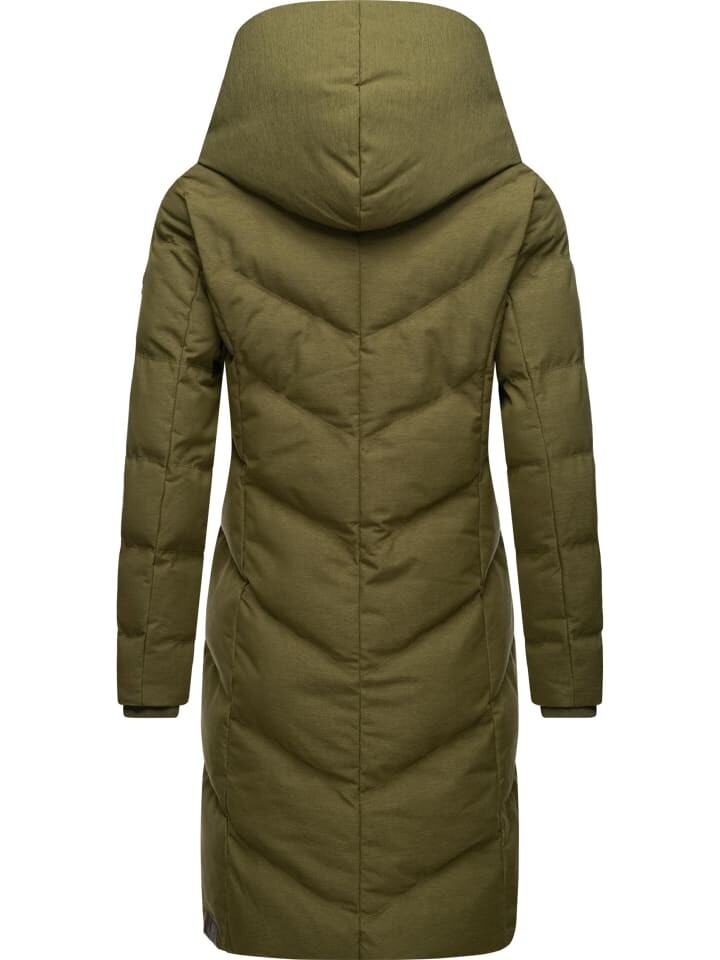 ВИД: Стильная зимняя парка на подкладке с большим капюшоном и высоким воротником от модного лейбла уличной одежды Ragwear, 100% веганское производство. МАТЕРИАЛ: Зимняя куртка из нескользящего, но мягкого внешнего материала, водонепроницаемая, с водяным столбом 4000 мм и приятная на ощупь. гладкая внутренняя подкладка с интересным узором. Принт
