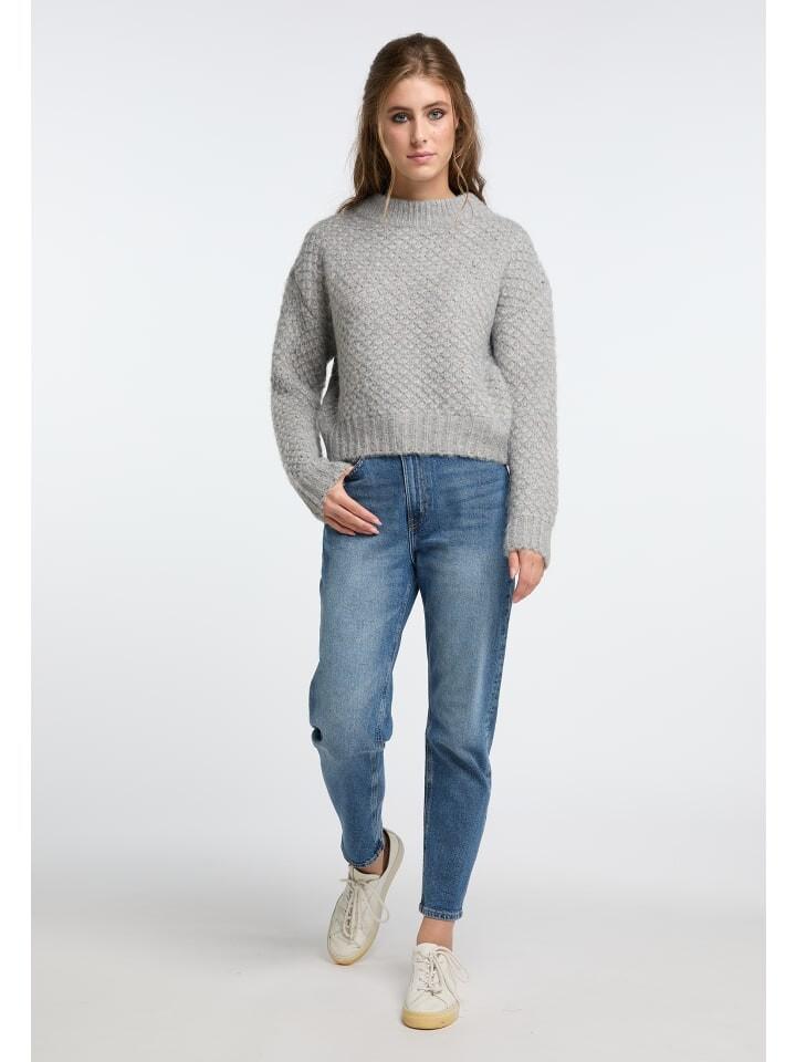 Этот уютный свитер крупной вязки от IZIA дополнит ваши осенне-зимние трикотажные наряды. Мягкая смесовая пряжа с добавлением шерсти связана свободной вязкой и имеет повседневный крой со спущенной линией плеч и небольшим воротником-стойкой. Повседневная модель подчеркнута меланжевым эффектом и широкой ребристой отделкой.