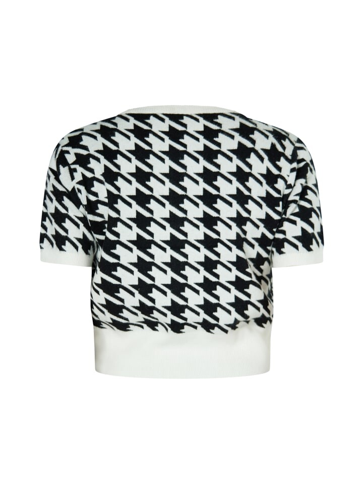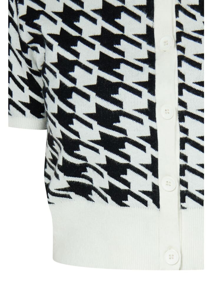 Кардиган с уникальным узором, короткими рукавами, пуговицами и рисунком «гусиные лапки». Этот стильный свитер станет идеальным выбором для любого случая. Он изготовлен из мягкой ткани и обеспечивает комфорт в течение всего дня. Благодаря модному дизайну вы будете хорошо выглядеть в любой ситуации!