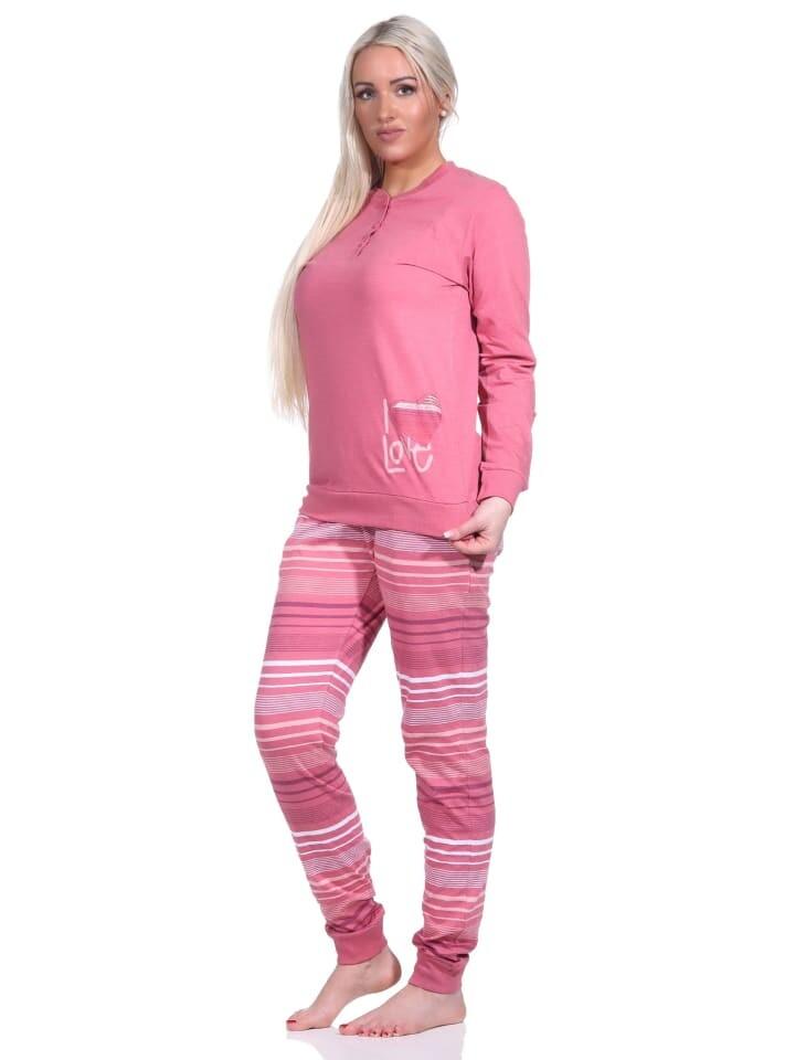 Просто красивый образ! Брюки этого великолепного женского пижамного комплекта с длинными рукавами имеют элегантный полосатый вид, верх однотонный и имеет аппликацию в виде сердечка.