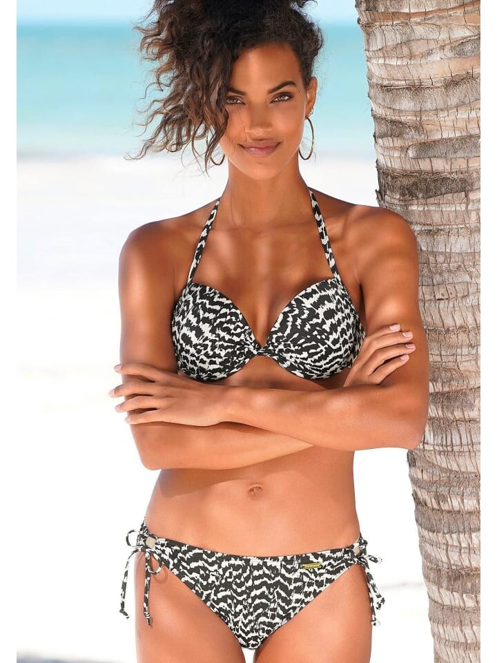 С модным принтом по всей поверхности: лиф бикини пуш-ап от Lascana. Шейный держатель для завязывания. Для отличного декольте. Мягкие чашки со встроенным усилением. Из серии Микс-Кини. Мягкая микрофибра.