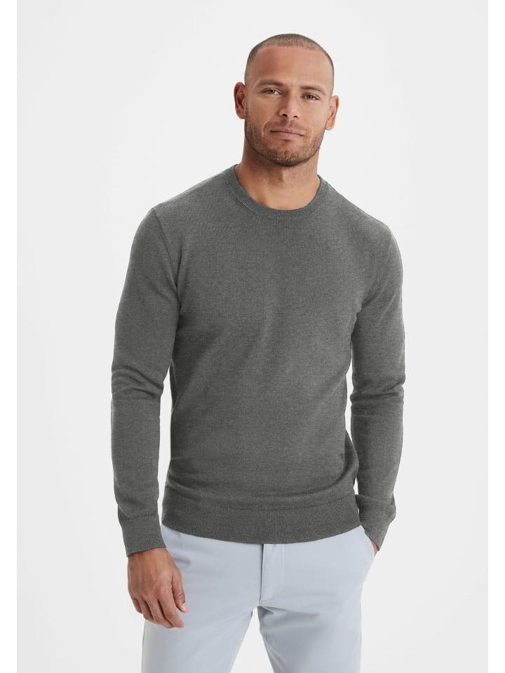 Классический свитер тонкой вязки HIS с ребристым низом и рукавами. Круглый вырез горловины с ребристыми манжетами. Приятная мягкая смесь хлопка.