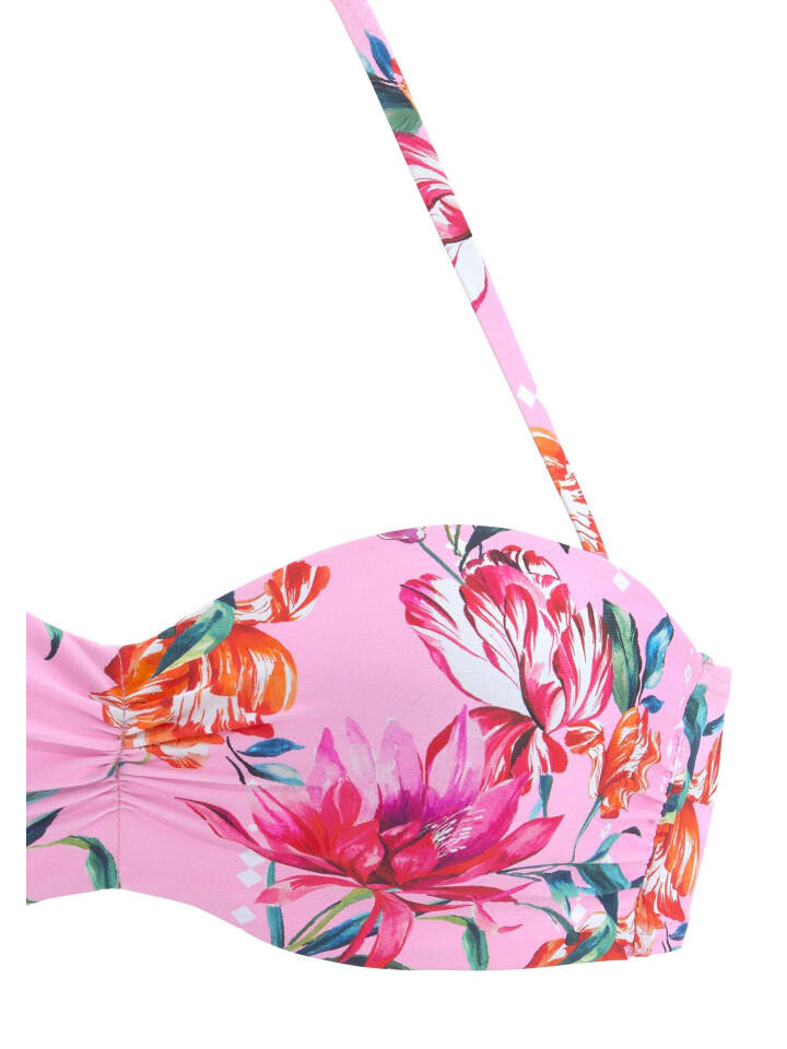 Лиф бикини-бандо Sunseeker на косточках. Цветочный принт. Съемный воротник-халтер. Мягкие чашки. Из серии Микс-Кини. Мягкая микрофибра.