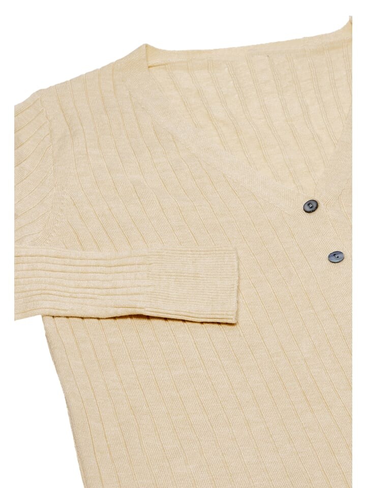 Порадуйте себя привлекательностью этого вязаного кардигана с ребристой текстурой и классическим V-образным вырезом. Передняя планка имеет вертикальное расположение пуговиц, что придает ей дополнительный шарм. Благодаря облегающим ребристым манжетам и нижней кромке эта верхняя одежда удобно смотрится поверх других предметов одежды. Мягкая эластичная ткань обеспечивает комфорт, а длинные рукава добавляют тепла вашему ансамблю.