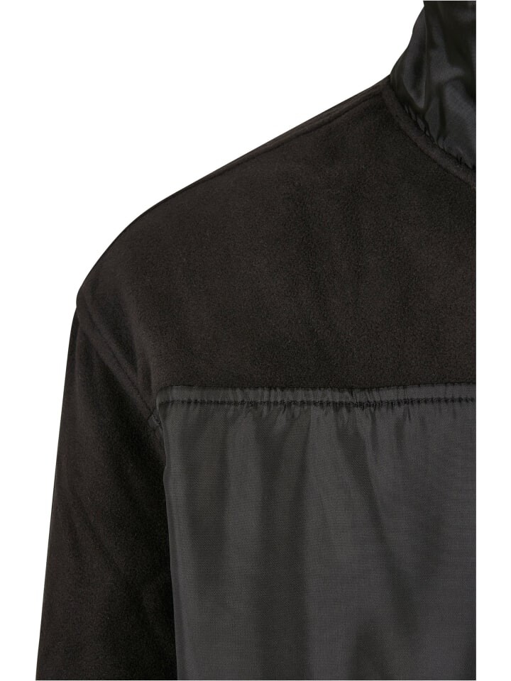 Удобная мужская куртка из флиса удачно дополнена нейлоновыми вставками на груди и вокруг воротника-стойки. Нагрудный карман на вертикальной молнии интегрирован, а флисовая куртка также имеет два боковых кармана, окантованных контрастным материалом. Эластичные манжеты и подол обеспечивают максимальный комфорт. Мужская куртка имеет удобную посадку большого размера со слегка заниженной линией плеч.