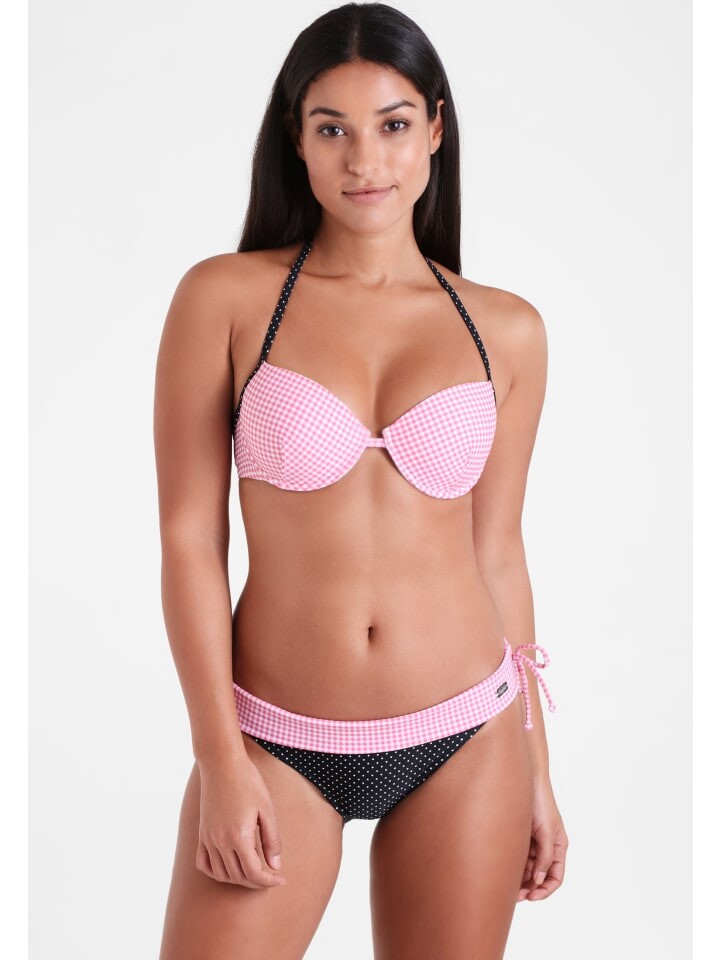 С мягкими чашками и съемными подушечками для сексуального декольте. Модель «халтер» завязывается на шее и застегивается сзади. В классном сочетании с клеткой Vichy и точечным узором. Изготовлен из 80 % полиамида, 20 % эластана (LYCRA). Подкладка: 100% полиэстер. Смешайте свое любимое бикини! Верх и плавки бикини можно заказать отдельно, поэтому их можно оптимально комбинировать друг с другом. Особый дизайн в горошек и клетка Виши придают топу пуш-ап нотку изысканности. Мягкие чашки обеспечивают великолепное декольте. Топ пуш-ап идеально подходит для небольших размеров и также доступен в чашке АА. Дополнительные съемные подушки подчеркивают зону декольте. Жаркое лето гарантировано с этим верхом бикини. Культовый бренд BUFFALO – тренд. Благодаря своему неповторимому и неповторимому стилю бренд уже много лет помогает модницам всего мира устраивать эффектные выходы в свет, где завистливые взгляды гарантированы. BUFFALO: Повседневный и стильный, высокого качества, потрясающего разнообразия, но всегда эксклюзивный. - Бренд: Buffalo - Тип: топ пуш-ап - Цвет: розово-черный - Стиль: молодой и модный - Подходит для: чашек меньшего размера - Принты/нанесение: клетка Виши и точечный дизайн - Чашки: мягкие чашки - Набивка: со съемными подушками - На косточках: на косточках - Бретели: тонкие бретельки - Застежка: завязывается на шее - Застегивается сзади