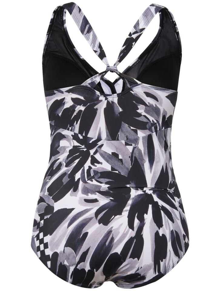 Купальник в стиле халтер с мягкими чашками и черно-белым принтом. Бретели завернуты сзади. Пояс под грудью, подкладка спереди. Изготовлено из переработанного полиамида.