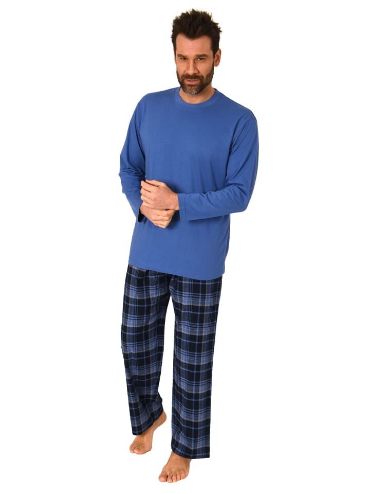 Мужские длинные пижамы, пижамы с фланелевыми брюками в клетку - 223 101 10 870