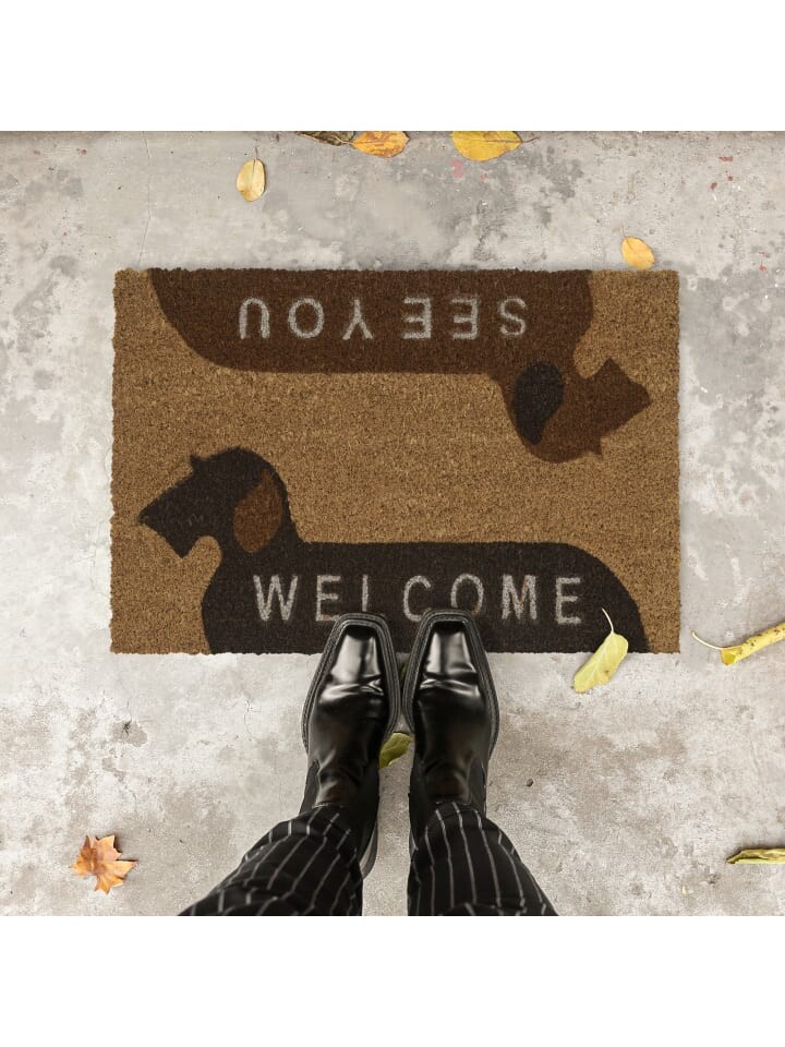 Этот коврик с изображением собаки и принтом «До встречи!» вызовет улыбку на лицах ваших гостей еще до того, как они откроют дверь. Но скребок для обуви впечатляет не только визуально. Натуральные волокна кокоса делают коврик прочным и долговечным. Экологически чистое сырье отличается атмосферостойкостью и придает коврику естественный вид. Нижняя сторона изготовлена из нескользящего ПВХ, поэтому коврик для обуви остается на своем первоначальном месте.
