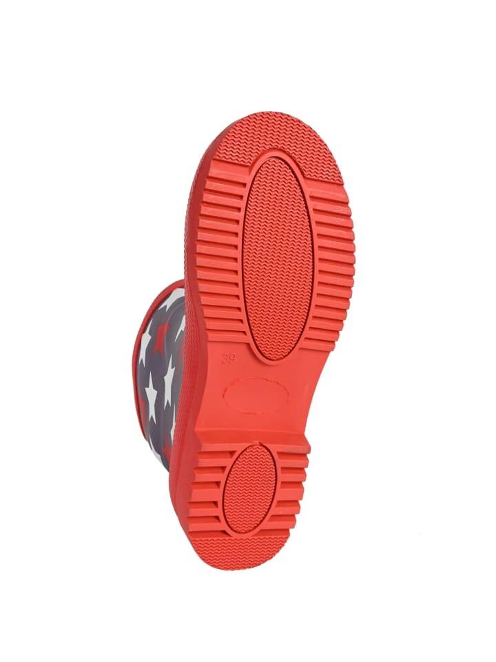 Модные женские резиновые сапоги Stars от Regenliebe привлекают внимание в дождливые дни. Серые резиновые сапоги с белыми и красными звездами впечатляют своим внешним видом, функциональностью и комфортом. Водонепроницаемый материал и подошва с хорошим профилем сохраняют ноги сухими и делают резиновые ботинки универсальными. Визуально впечатляет не только красная нескользящая профильная подошва, декоративная пряжка сбоку также завершает дизайн.