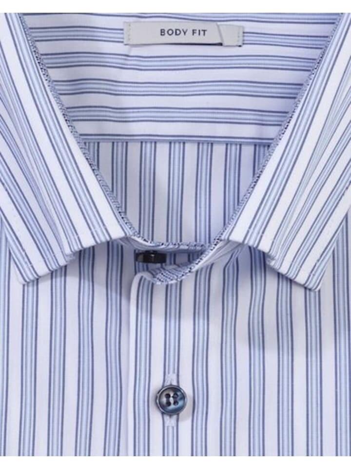 Повседневный офисный вариант с классическими полосками. Облегающее боди OLYMP Level Five в оттенках синего и белого можно легко комбинировать и использовать с умом. Безопасная для кожи ткань Comfort Stretch, изготовленная из тонкой хлопчатобумажной пряжи с содержанием эластолефина, обеспечивает стабильную свободу движений, за ней легко ухаживать и ее легко гладить. В комплекте нижняя пуговица в спортивном стиле.